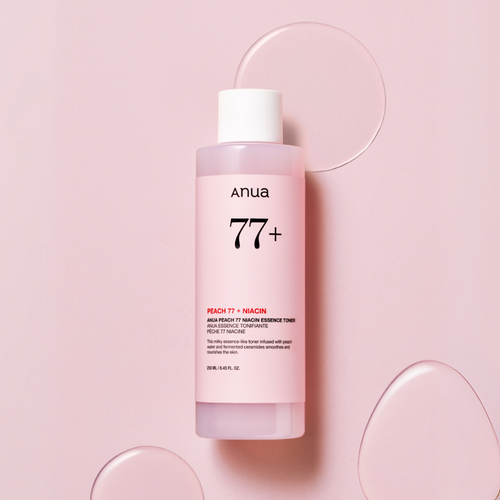 Anua Peach 77 Niacin Essence Toner: Radiant, glowing skin with natural peach extract, hydration, and brightening agents. Suitable for all skin types.