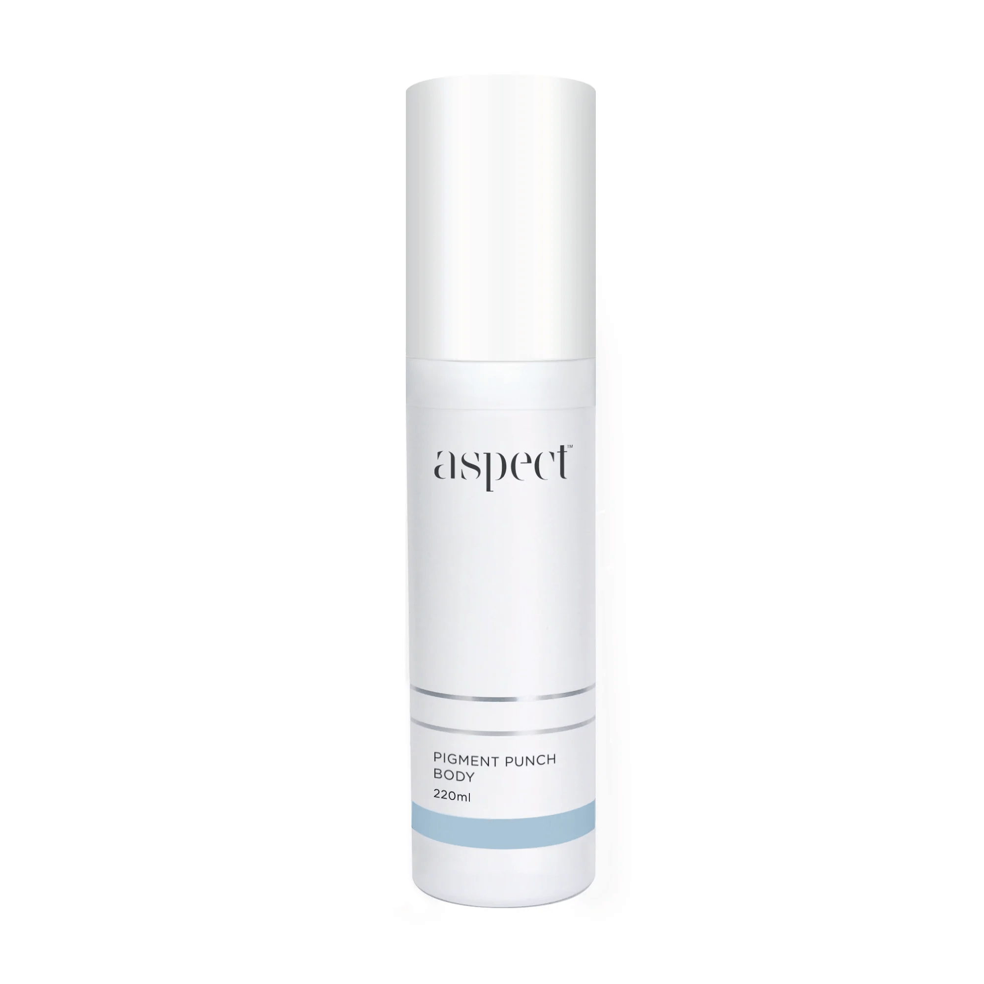 Aspect Pigment Punch Body 220ml targets signs of aging, minimizes discoloration, hydrates, and smooths skin. Perfect for aging skin.
