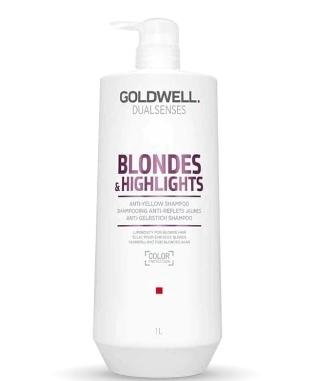 This bundle includes Goldwell Dualsenses Blondes & Highlights Anti-Yellow Shampoo, Goldwell Dualsenses Blondes & Highlights Anti-Yellow Conditioner, and Goldwell Dualsenses Blondes & Highlights 60 Second Treatment. The shampoo instantly brings out color luminosity and neutralizes unwanted yellow tones for blonde color reflections, while the conditioner detangles immediately and neutralizes unwanted yellow tones for luminous blonde color reflections. The 60-second treatment regenerates hair instantly up to 100% and neutralizes unwanted yellow tones for luminous blonde color reflections.