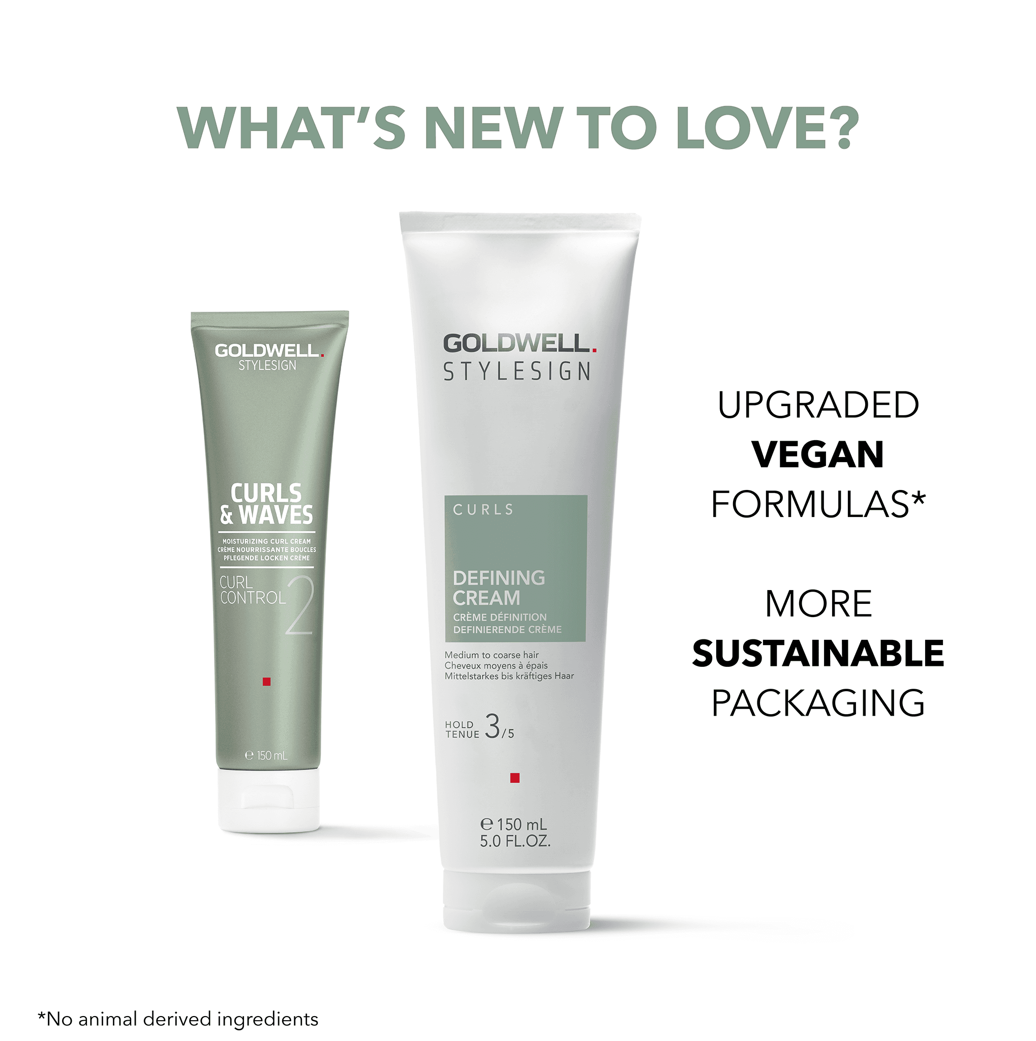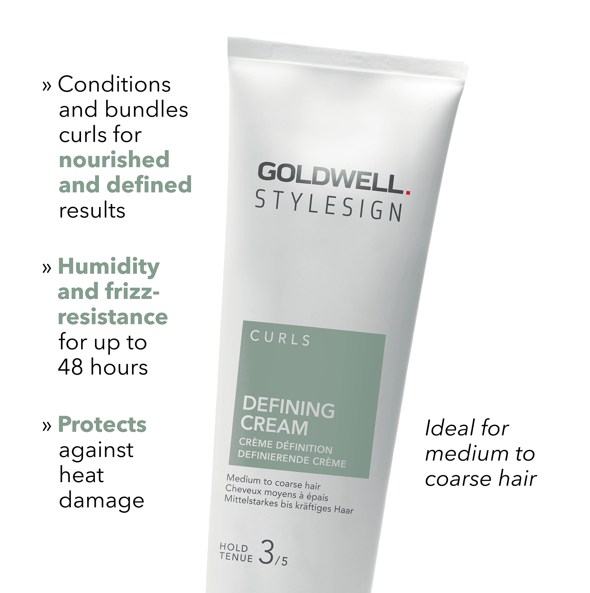 Goldwell StyleSign Defining Cream offers a natural, flexible hold with shine for curly hair. Easy to apply and distribute evenly.