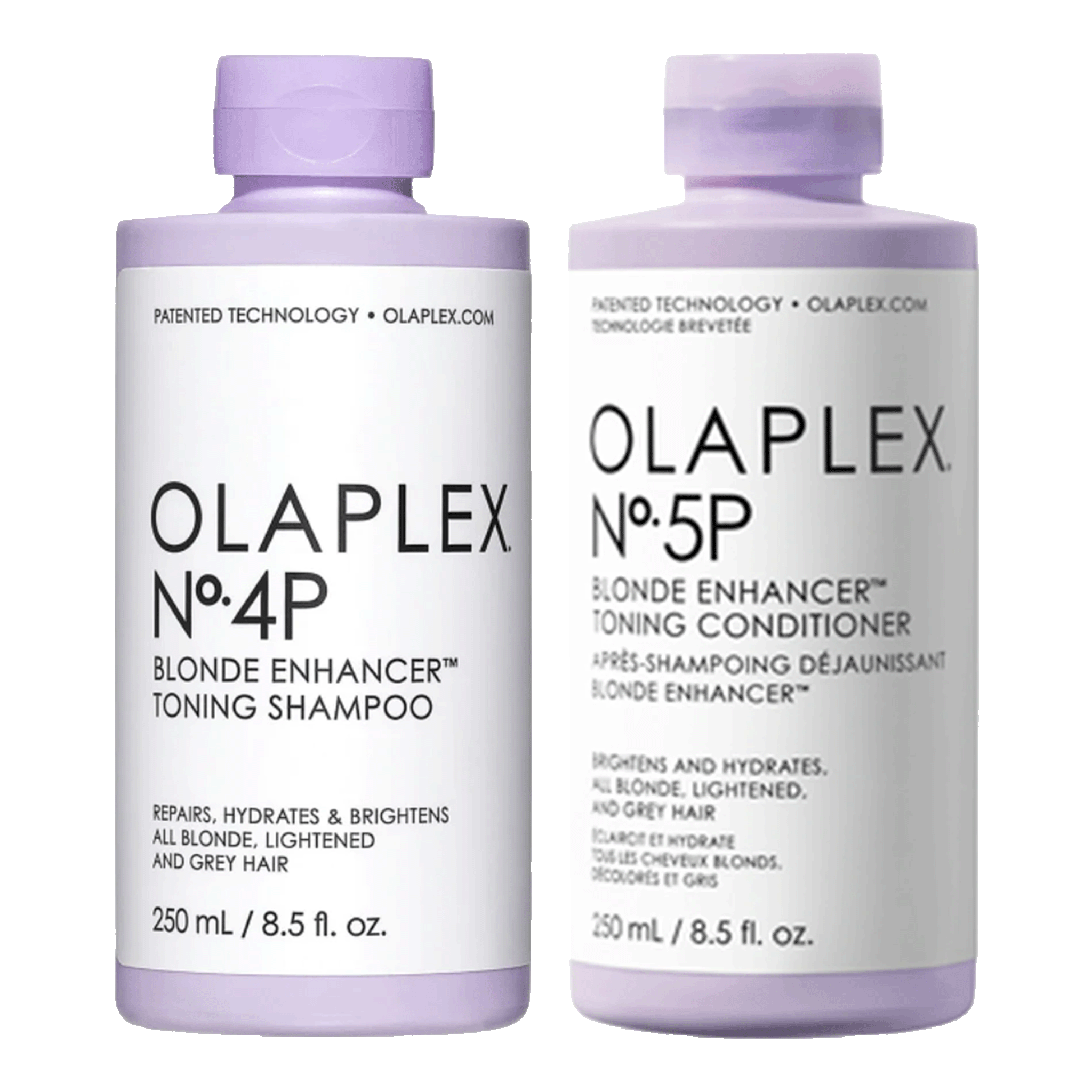 This Olaplex bundle includes the No.4P Blonde Enhancer Toning Shampoo and the No.5P Blonde Enhancer Toning Conditioner, both in 250ml sizes.