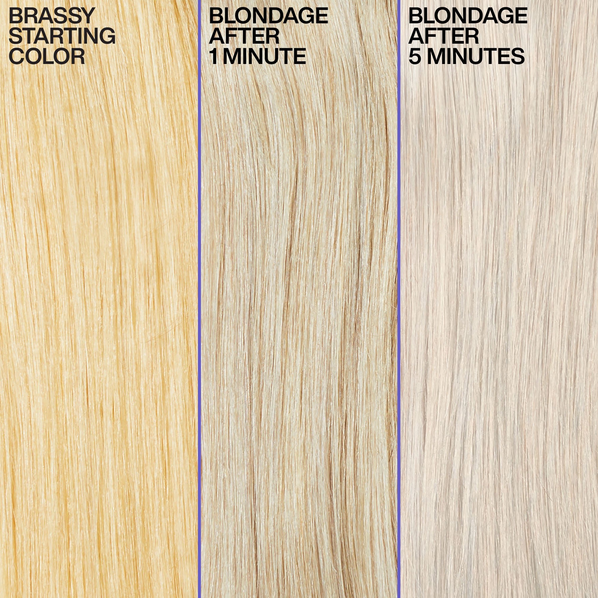 Pure violet (purple) pigments remove unwanted brassiness to leave your blonde hair color cool and bright.